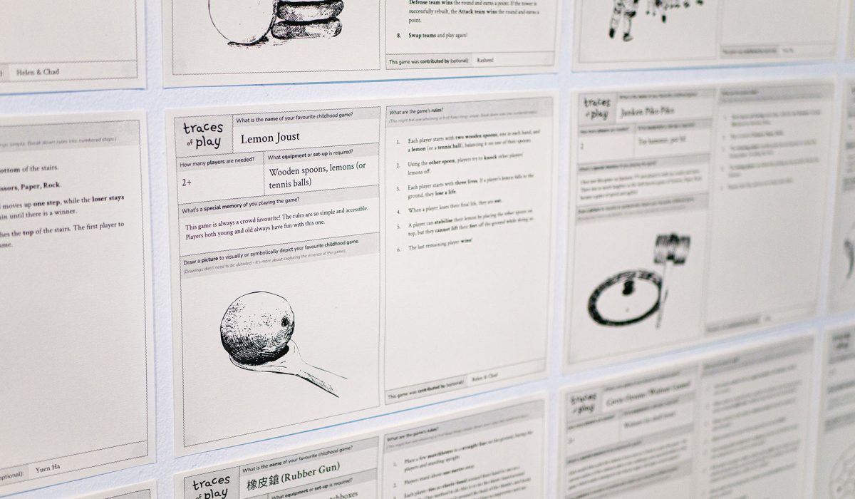 Traces of Play is a participatory installation that celebrates the folk, playground, and street games we used to play. From sticks to stones, erasers to elastic bands, walnuts to wooden spoons: Traces of Play invites us to subvert these humble everyday objects into magnificent playthings of joy. Participants are invited to play games contributed by the community, and add their own favourite childhood game to the installation. Exhibited at the Roslyn Smorgon Gallery at Footscray Community Arts from 17 September – 13 December 2025. The installation was a part of the We Have Been Called Many Things exhibition curated by Curatorial Ensemble, and featured as part of Melbourne Fringe and Melbourne International Games Week. Collaborator: Chad Toprak Creative development supported by City of Melbourne Arts Grants. Photos credit (installation and workshop photos): Helen Kwok & Chad Toprak Photos credit (last 2nd-4th photos): Thuy Vy Photos credit (last photo): Yi Li