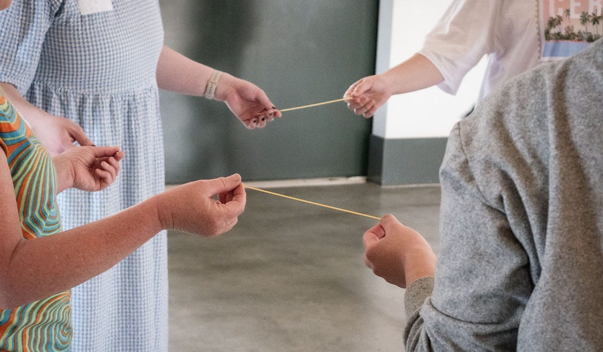 Transient Threads is a participatory installation about unravelling your emotions. Participants are invited to reflect on their feelings in response to world events that have been happening in the last six months, and then weave their emotional journey using biodegradable tape around the six pillars of the pavilion: Courage Care Anger Fear Sadness Surprise After unravelling their emotions in the space, participants can choose to complete an intention card by writing down a simple action they can take to address those feelings. Over three days, the installation grows to become a visual snapshot of the community’s spectrum of feelings, captured one thread at a time. Presented at MPavilion Parkville from 21–23 May 2024. Collaborator: Chad Toprak Photos credit: Emma Byrnes